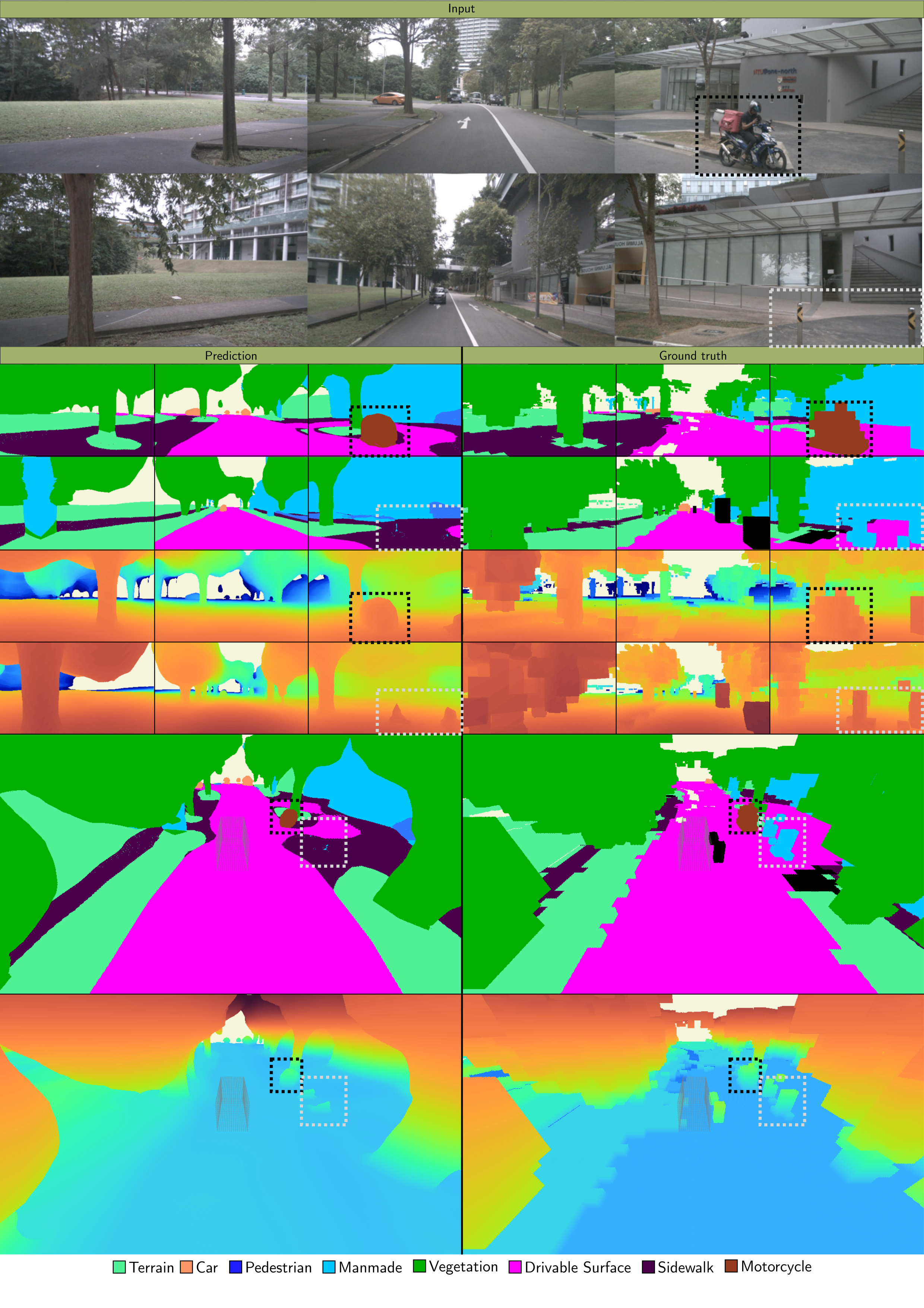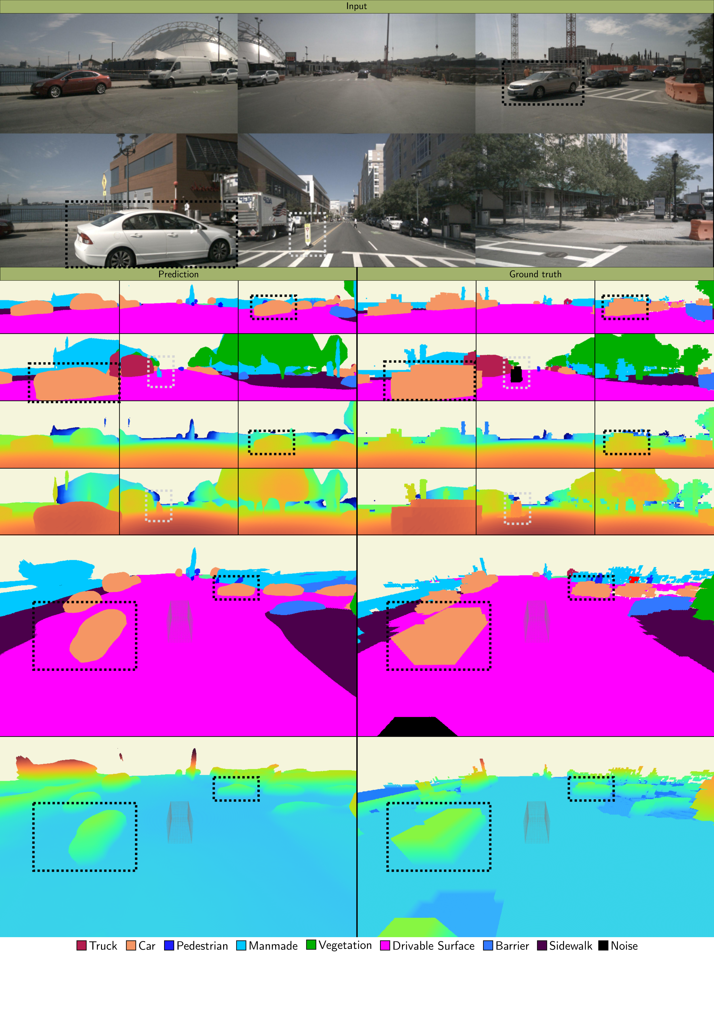 | Model | Mean | Barrier | Bicycle | Bus | Car | Cons. veh. | Drive. surf. | Manmade | Motorcycle | Pedestrian | Sidewalk | Terrain | Traffic cone | Trailer | Truck | Vegetation |
